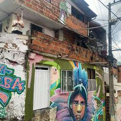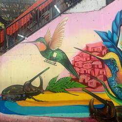 Die wohl bekannteste Nachbarschaft ist die Comuna 13, auf 70 km2 wohnen ca 200.000 Bewohner*innen in 16 Vierteln. Die Comuna war früher vor allem bekannt für die viele Drogenkriminalität nach dem Tod von Pablo Escobar. Unser Guide erzählt von seiner Kindheit inmitten von Drogenhandel, Schutzgeld-Zahlungen, Militäroperationen und der Transformation der Gemeinde. Er betont die Relevanz der Zugänglichkeit des Viertels durch die Unterstützung der Stadt mit dem Bau der Rolltreppen, Wasser- und Stromversorgung uvm sowie der Kunst als Protest- und Erinnerungsbewegung. Die Historie und Kunst ziehen nun hunderttausende Touristen an und nach vielen Jahren gibt es zahlreiche Job-Möglichkeiten, die nicht im Gang- und Drogen-Business liegen.