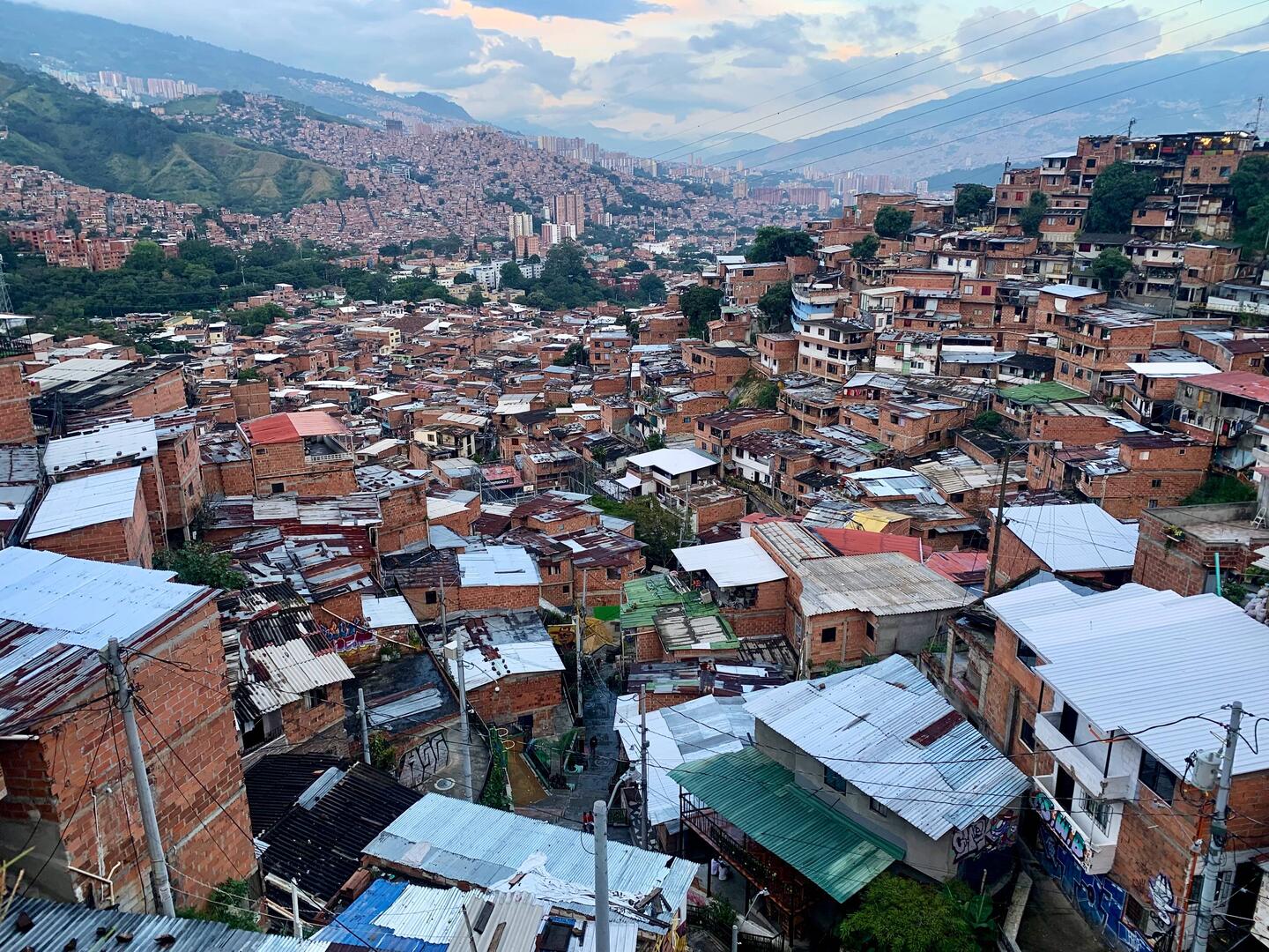 Besonders eindrücklich sind für mich die Begegnungen und Geschichten der drei Comunas, die ich besuche. So verschieden sie auch sind, zeigen sich auch viele Gemeinsamkeiten: Rote, unverputzte Backsteinhäuser, teilweise aufeinandergebaut, Stromkabelsalat, steile Hänge, enge Gassen, viele Treppen, unglaubliche Aussicht auf die im Kessel liegende Stadt, an den öffentlichen Nahverkehr angebunden mit Gondeln. Gebaut wurde hier ohne Genehmigung und Stadtplanung wegen Wohnraummangel. Nach 10-11 Jahren ist ein Haus dann legal. Die Anerkennung des Viertels und damit Anbindung an die städtische Versorgung bzgl. Bau von öffentlichen Einrichtungen wie Schulen, ärztliche Einrichtungen oder Sportanlagen kommt erst Jahre später. Die Entwicklung eines Viertels und die Schaffung von Möglichkeiten liegen lange bei den Menschen, die dort wohnen. Der Kontrast zu Deutschland könnte nicht größer sein.