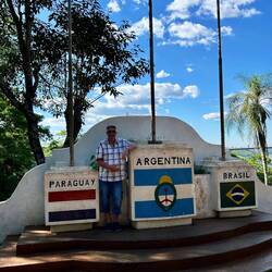 Das Riesenrad steht in Brasilen , die Brücke geht nach Paraguay und ich bin in Argentinien