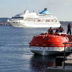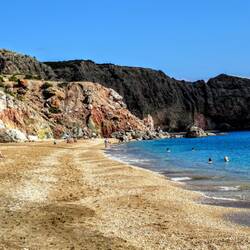 We woke this morning as our ship departed Mykonos, so enjoyed the morning at sea cruising past lots of islands some uninhabited, some quite large . We got to Milos at lunch time, but this time we couldn't dock as it was a smaller port, so we tested the lifeboats to get to shore 😊 We chose the amazing beaches tour.. First stop was Sarakiniko beach.. Not really a beach but stunning white stone cliffs formed by volcanic activity, with crystal clear water.. Very beautiful. The second beach was Paliochori beach.. Known for it's colourful stone formations, and volcanic sands. The water was cold but again crystal clear, so we enjoyed a dip in the Aegean.Read more