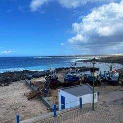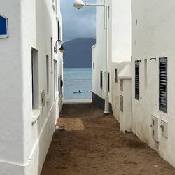 Dann folgt die malerische Kulisse der Insel La Graciosa, mit wüstenartigen Flächen, Vulkanhügel, einer blendendweissen Siedlung und einem Hafen.