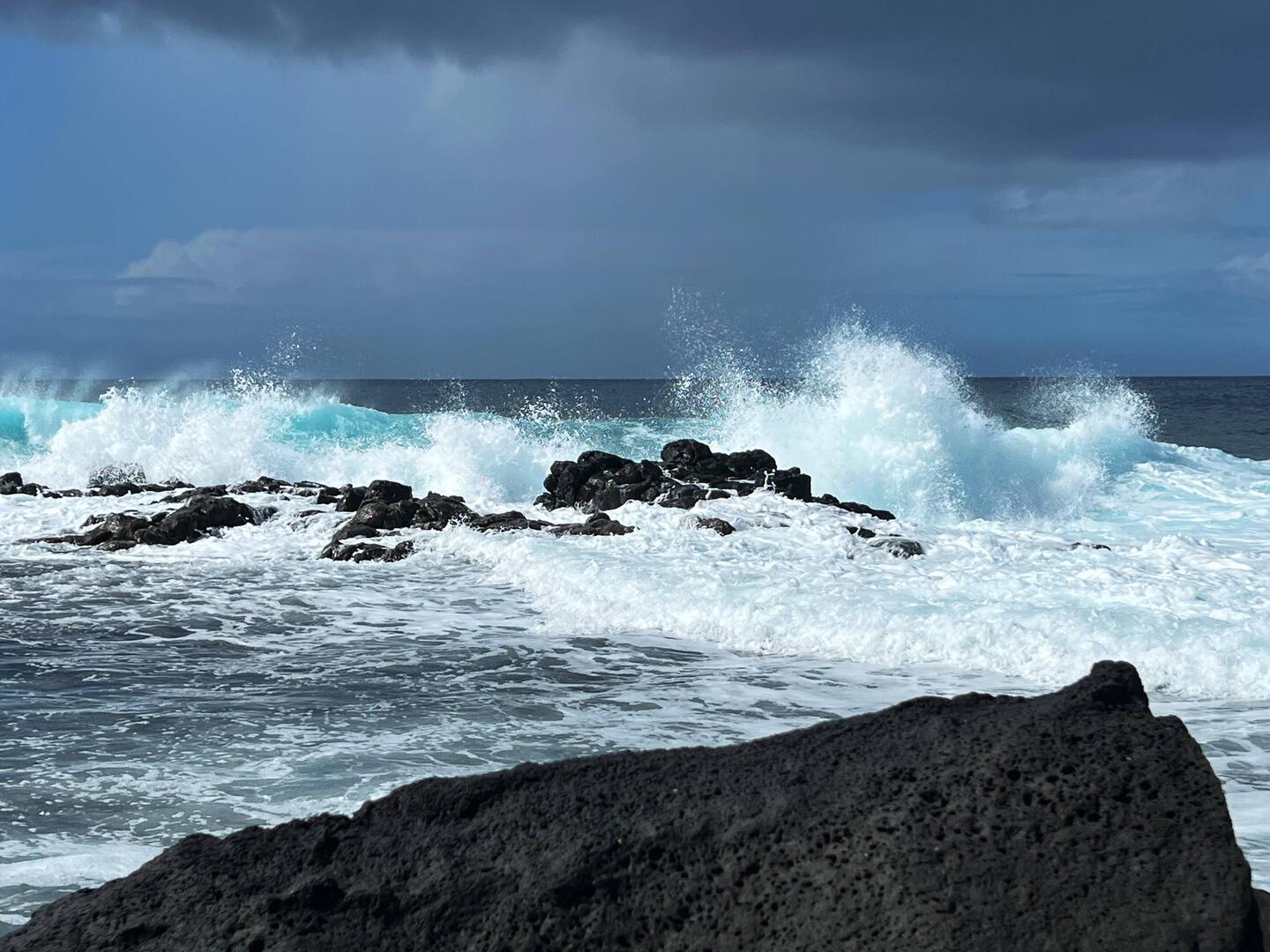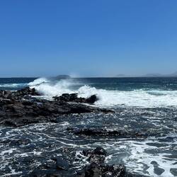 Wir wachen bei schönstem Sonnenschein und stürmischen Wellengang auf. Endlich können wir unsere Dachterrasse mit traumhaftem Blick und dem rhythmischen Klang der Wellen ausgiebig genießen.