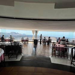 Ein zweigeschossiges Gebäude ist so in den Berg integriert, dass es wie natürlich gewachsen erscheint. Im einen Geschoss befindet sich ein Café mit halbrundem durchgehenden Panoramafenster- und einer vorgelagerten Aussichtsplattform. Im oberen Geschoss darüber ein kleiner Laden und eine weitere Aussichtsplattform. Das klingt banal, beschreibt aber nicht annähernd was hier geschaffen wurde. Selbst nach mehr als 50 Jahren (Baujahr 1973) zieht das Bauwerk wie ein Magnet die Besucher an. Geschwungene Kuppel-Räume, Sitznischen, Tresen, gewundene Treppen und dazwischen immer wieder Pflanzen, und natürlich nicht zu vergessen der grandiose Ausblick. Fast 500 Meter fallen die Bergflanken steil bis zum tiefblauen Meer.