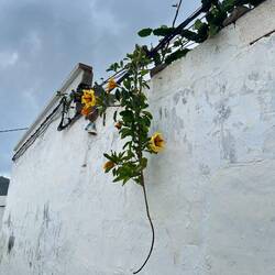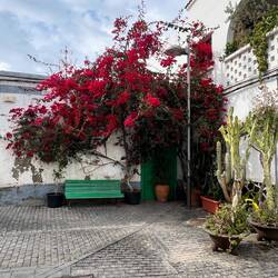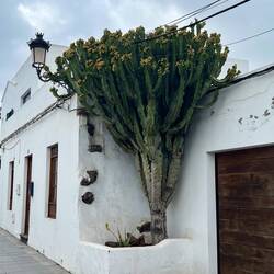 Wir beginnen mit einem Spaziergang über den Markt von Teguise, angeblich ein ‚besonderes’ Highlight für Besucher… Das Besondere bestand darin, dass wir nirgendwo sonst soviel dicke Deutsche und englische Pauschaltouristen gesehen haben, die sich durch die Marktstände drängten. Ein gutes Geschäft für den Ort. Viele Läden hatten auf (es ist Sonntag) und zeigten ihre Waren. Für uns waren eher die alten Häuser sowie die schön gestalteten Innenhöfe von Interesse. Die Marktstände waren mehrheitlich uninteressant. Wer örtliche, traditionelle Handwerkskunst sucht, wird enttäuscht. Hiervon gab es nur in einem kleinen Teilabschnitt einige wenige Vertreter. Ansonsten dominierten Billigprodukte aus China oder Afrika😁. Auch beim Essen mussten wir länger suchen, um neben den Burger- und Pommes-Buden einen Stand mit Empanadas zu finden.