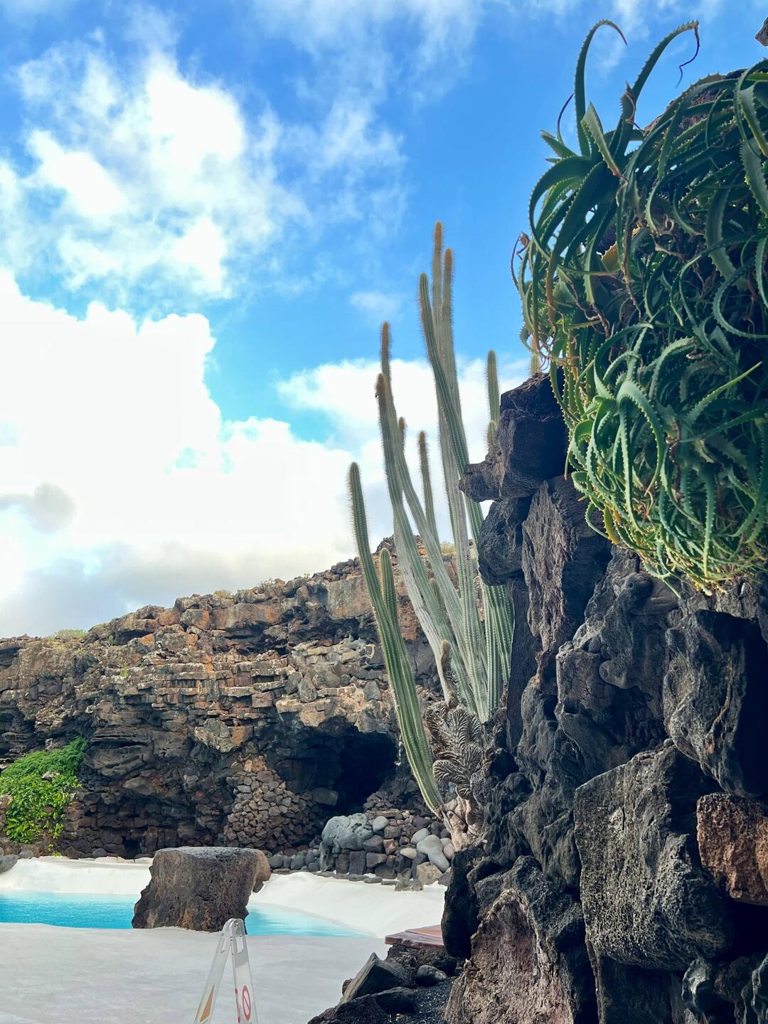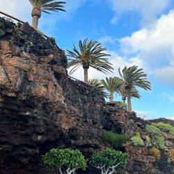 In einen ehemaligen Steinbruch hat Cesar Manrique mit einem Künstler zusammen begonnen in den 1970er Jahren ein Haus mit Garten zu bauen. Der Auftraggeber war ein Immobilienmakler. In der darauffolgenden Zeit fanden Filmarbeiten auf Lanzarote statt. Als Hauptdarsteller war Omar Sharif mit von der Partie. Er sah das Haus und hat sich darin verliebt. Also kaufte er es, um es dann in einer legendären Bridgepartie kurze Zeit später wieder an den Makler zu verlieren. 1989 kam ein deutsches Architektenehepaar auf die Insel und hat das Potenzial erkannt, hier ihren Traum zu verwirklichen. Sie entwickelten das Projekt von Cesar Manrique weiter zu einem Gesamtkunstwerk, das auf der Insel und weit darüber hinaus einzigartig ist. Seit 1997 kann man das Ensemble besichtigen.