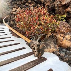 Unterschiedlich geschwungene Wege führen durch den Kakteenwald und zeigen immer wieder neue, reizvolle Blickbezüge. Vulkanische Stelen und Eruptionsbrocken bilden ein ausgewogenes Wechselspiel, das mit großem Fingerspitzengefühl komponiert ist.