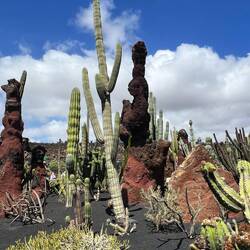 Ortswechsel! Unser nächstes/ eigentliches Ziel des Nachmittags ist der Kakteen-Garten, das letze Werk von Manrique vor seinem tödlichen Autounfall. Entstanden in den 1980er Jahren hat sich dieser Garten inzwischen zu einem einzigartigen Ort entwickelt. Es gibt wenig Anlagen, wo man eine derartige Vielfalt an Kakteen, in vergleichbarer Größe und Vitalität findet. Es finden sich Spezies aus der ganzen Welt, von Südamerika bis Indien, Asien und Australien. In einer ehemaligen Müllhalde, in einem alten Steinbruch ist Manrique ein weiterer Geniestreich gelungen.