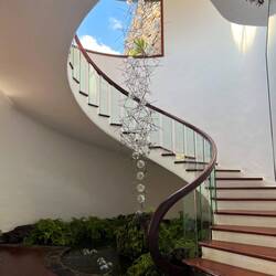Ich habe selten eine derartig gelungene Integration von Gebäudestrukturen in die Landschaft gesehen. Balkone, Erker, Aussichtspunkte, Höfe, Passarelen, Hölen, in Verbindung mit unglaublich gelungenen Gartenelement sowie einem Brunnen, Teichen, Fontänen.