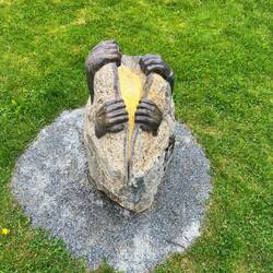 Erschöpft kommen wir unten an und nehmen uns aber noch die Zeit eine Freiluftgallerie mit Exponaten von unterschiedlichen Künstlern anzusehen. Auf einer Schautafeln sind die auf den verschiedenen Inseln verteilten Exponate dargestellt.