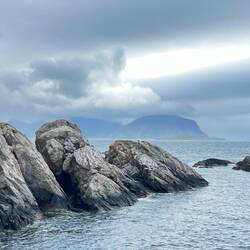 Wir stellen fest, dass die Vesteralen selbst bei Regen wunderschön sein können. Denn es regnet selten überall. Kaum überquert man einen Bergrücken und gelangt zu einem anderen Fjord- so ändern sich Licht, Farben und Wetter. Jeden Tag erleben wir neue Küstenabschnitte und Fjorde mit einem völlig anderen Charakter.