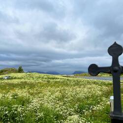 Ein kleiner Friedhof, eingefasst mit waldartigem Rand, direkt am Fjord strahlt einen magischen Charakter aus. Daneben eine Steinsäule, auf der alle im Fjord ertrunkenen Fischer aufgeführt sind. Schönheit und Tragik, eng verbunden.