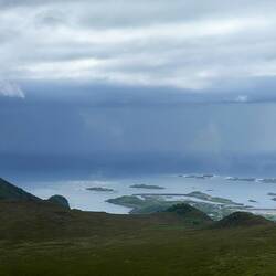 Die Insel liegt auf der Höhe von Grönland. Daher gibt es neben weich geschwungenen grünen Bergkuppen, weite ebene Flächen mit Tundra. Die Insel ist erstaunlich dicht besiedelt. Dies liegt sicherlich an der landschaftlichen Schönheit. Auf der Westseite verstärkt durch ‚karibische‘ Sandstrände mit türkisfarbenem Wasser - nur die Wassertemperatur kann trotz Golfstrom nicht ganz mit der Karibik mithalten.