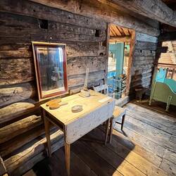 Die Hütte ist von der Kommune bzw. von einer Sport- und Wandertruppe gebaut. Hier kann man Cafe kochen, Essen aufwärmen und wohl auch Feste feiern, wie das ausgelegte Fotoalbum zeigt.