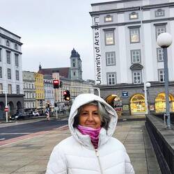 ReizigerEs ist sehr kalt heute. Hoy día muy frío. Hemos visto la catedral nueva, que es 2 metros más baja que la de Viena, construida así a propósito. Luego dimos un paseo largo para llegar a una pequeña capilla,Martinskirchen Después fuimos al schlossmuseum que está construido sobre el Castillo. Luego vimos una casa donde estuvo Mozart, que es como un patio de vecinos. Y por fin subimos en tranvía a Postlingberg sobre una colina de 539 metros. Allí arriba comimos schitzel y tarta sacher, ya sé pronunciarla bien. Cuando bajamos dimos paseo por las calles tumultuosas .