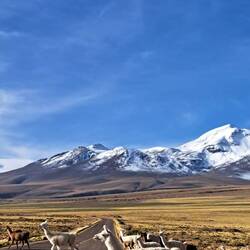 Auch heute haben wir wieder Glück mit der Tierwelt. Neben unzähligen vecunas läuft uns doch tatsächlich auch ne Lamaherde vors Auto. Außerdem sichten wir bei unserem erstem Stop noch einen Andenfuchs. Sehr cool.