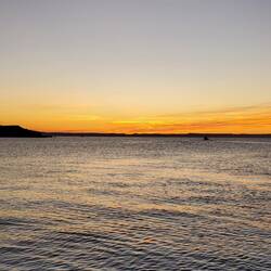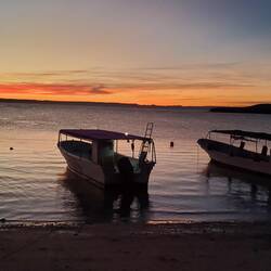 En el camino de regreso a Pichilingue en el bote y luego en la van a La Paz vimos el primer atardecer de Baja. Cuando el sol se cae, el mar de Baja se pone de todos los tonos violetas y los coloresEn savoir plus