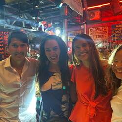 Para terminar nuestro día, y mi cumple, nos arreglamos, me puse mi regalo de cumple, mi vestido floreado, y fuimos 1ro al.rooftop del Thompson, un hotel super lujoso y espectacular. Allí nos tomamos uns tequilas Din Julio 70. Luego bajamos a la playa del hotel donde había una fogata bella. Estuvimos un rato contemplando el fuego y el sonido de las olas. De allí nos fuimos al centro y entramos el Bar Squid Roe. Unos de los bares mas cool y famosos de los Cabos. Esta decorado como un bus, sin techo, pies en Baja solo llueve 3 veces al año, y con letreros con mensajes cómicos. De allí salimos y fuimos a comer tacos en un kioskito de la calle. Un tipo se puso a hablar conmigo, digamos que tuve un levante chilamgo jaja, y la Clau muy cómica cin sus comentarios.Read more