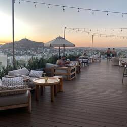 Después de Playa Santa María nos vinimos a este rooftop del resort Cabo Villas. Venimos a ver el atardecer en la despedida. En frente de las priedras del Pacifico vemos la paleta de colores para que quede en nuestra memoria esta belleza por siempre, tanto lo visual como sensorial esas experiencias vividas. Nadie te quita lo bailaó jaja. Además de ver el atardecer, nos tomamos un cocktail y comimos tacos. El lugar perfecto para despedir nuestro viaje. Adios Baja! Volveré.Read more