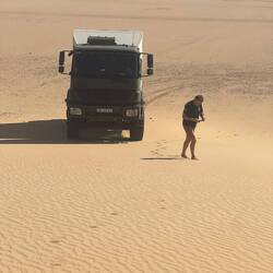 Bis zum „Dach“ im Treibsand ….. und dann zum Kaffee bei Mahamad ….. authentischer gehts nicht ……