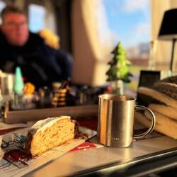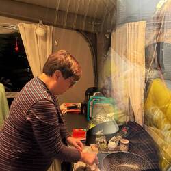Wir lassen den Tag ruhig beginnen. Wir tauschen schon mal die kleine Gasflasche und besorgen uns beim Bäcker noch ein paar Brötchen. Dann genießen wir im Vorzelt die Sonne,