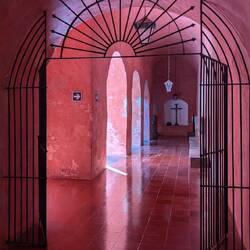 Wandered across town to see the old convent built in the 1500s. Then a really good lunch of tamales. Afternoon of pool relaxing, called Joe, talked to P&K