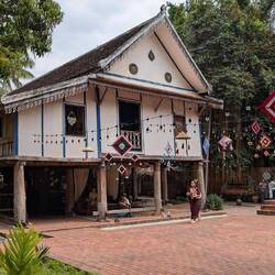 Our first four nights in Luang Prabang were spent at a resort a bit out of town, across the Khan river. I think when we booked it there was a pedestrian bridge nearby that dropped right into the townMeer informatie