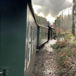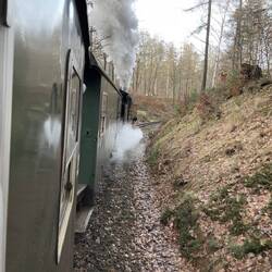 Auf Besuch bei dem Kind in Zittau, das erste Mal mit der Kleinbahn unterwegs. Wanderung von Jonsdorf nach Oybin durch das sehr nasse Mittelgebirge.