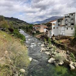 Wir fahren am Rio del Jerte entlang in die Berge. Eine sehr schöne Gegend. Das wissen auch die Spanier, es ist alles überfüllt. In Cabezuela de Valle finden wir dann doch noch einen Parkplatz. WirBaca lagi