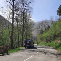 Heute geht es über die Pyrenäen. Die langen Passfahrten und die Serpentinen haben es in sich. Nachmittags erreichen wir Bagnères-de-Luchon. Unser Stellplatz für Heute.