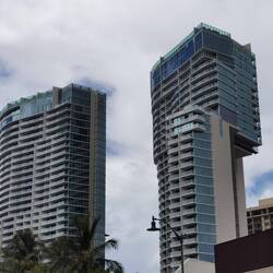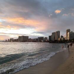 Plaża Waikki jak na plażę miejska przystało otoczona wielopiętrowymi hotelami i centrami handlowymi :-/