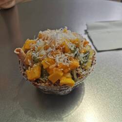 Hawajskie przysmak na upały, pierwotnie robiło się je tak ze skrobalo /golilo się bryle lodu i zalewalo sokiem owocowym.