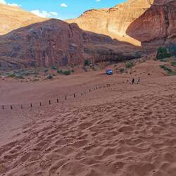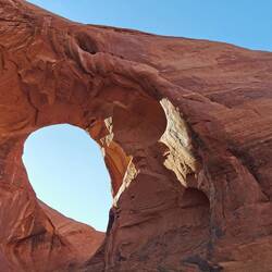 Piękny łuk w Monument Valley a w koło niego mięciutki jak mąka ziemniaczana piasek