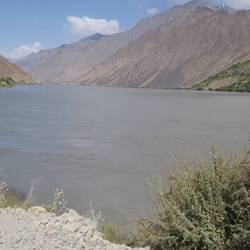 239 km Strecke in 7 1/2 Std. entlang der Grenze zu Afganistan legen wir heute mit dem Auto zurück. Vorwiegend auf Schotterpisten. Mit den zwei Motorradfahrer haben wir im Hostel in Duschanbe schonMeer informatie