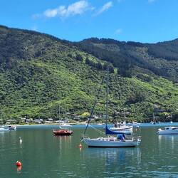 Von Picton aus machen wir uns auf den Queen Charlotte Trail der führt entlang der Küste. Wunderschöner Radtag. In Havelock essen wir das erste mal Miesmuscheln, die haben eine grünen Rand.