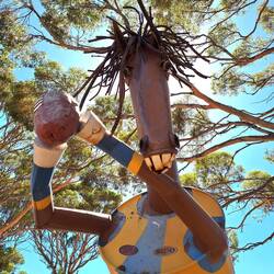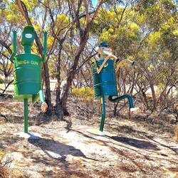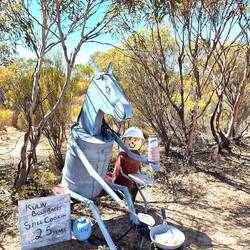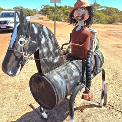 Zum Frühstück fahren wir nach Hayden zurück weil die Campkitchen so schlecht ausgestattet ist das wir nicht mal ein Kaffee kochen können. Danach steigen wir wieder ins Auto und fahren zurück an die Küste nach Busselton. Auf unserer Strecke liegt der Tin Horse Highway den finden wir richtig lustig.Read more