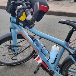 Heute morgen stellen wir leider fest das Martins Isomatte kaputt ist. Er radelt zurück nach Bremen wo wir gestern in einem Outdoor Laden schon mal was gekauft haben.