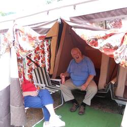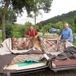 Dave und Mary haben im Zeltanhänger anscheinend wunderbar geschlafen. Nach dem Frühstück geht es hinauf auf den Berg. Dave und Mary haben sich für dieses Abenteuer extra feste BergschuheLeer más
