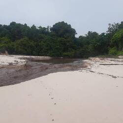 Tak prší. Ne chčije! Opravdové slejváky , kýbl otočím. V noci jsme slyšeli jak nám prokapava slamená střecha, větrák se rozhodl ťukat prostě nám tu není dobře. Po slejvaku se jedemeBaca lagi