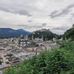 Rytas Salcburge vaiskus ir šiltas, papusryčiaujam besigrožėdami prieš langus stūksančiu kalnu, bet jau laikas judėti.