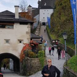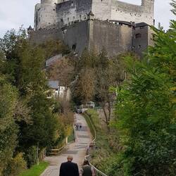 Mit der Festungsbahn sind wir in 54 Sekunden 120 m hoch über Salzburg. Hier erwartet uns ein herrlicher Ausblick, der durch das "Kaiserwetter" zum Strahlen gebracht wird.