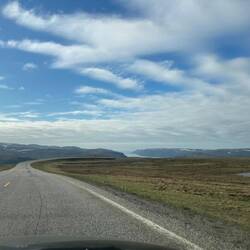 Unglaubliche Landschaften auf dem Weg in Serpentinen um die Fjorde herum, oben dann endlose Weiten, Strasse teilweise schnurgerade und sehr viele Rentiere und andere Tiere.