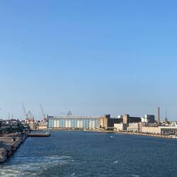 Mittagessen am Hafen, wegen Möwen unter Zelten, danach noch lange am Wasser gesessen und schließlich Richtung Fähre gefahren.