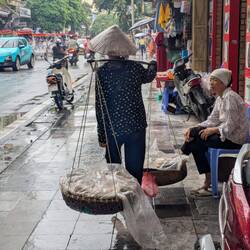 Danach haben wir ein bisschen die regnerische Stadt erkundet, an jeder Ecke gibt es frische Früchte, Kleidung oder Hüte. Wir kommen in ein paar Tagen noch mal zurück nach Hanoi, aber jetzt geht es erstmal zu den Inseln im Norden.