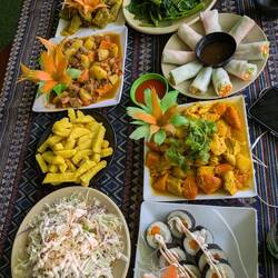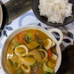 Um uns rum das Meer, also gibt es hier ganz viel Seafood und wir haben erstmal ein Curry verdrückt.