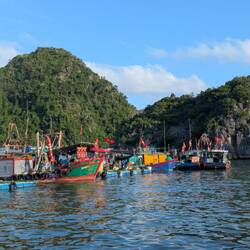 Mit Bus und Boot ging es nach Cat Ba, eine bergige Insel im Norden mit ganz vielen kleinen Babyinseln drum herum.