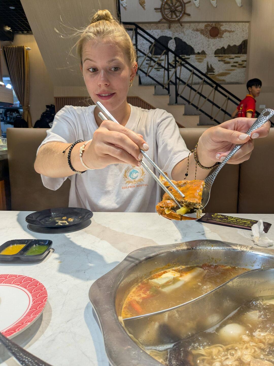 Der Hot Pot hat mich total an meine Flusskrebs Experience in China erinnert. Das spannendste war irgendein Bällchen aus Ei und Fisch mit Pfeffer und Nelken innendrin.