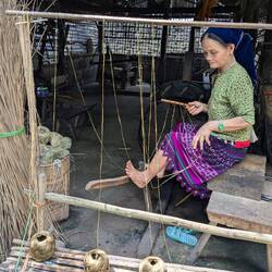 Mama Chi ist 31 und hat ihren Mann (34) ganz traditionell beim New Year Fest kennengelernt. Nach nur 4 Tagen haben sie geheiratet. Als sie 16 war hat sie ihr erstes Kind bekommen und lebt jetzt mit einer Tochter und zwei Söhnen in dem Dorf von ihrem Mann. Sie haben ein paar Hühner und einen Büffel und bauen alles was sie zum Leben brauchen selber an. Selbst den Hanf, den sie nicht rauchen, sondern für Kleidung verwenden.