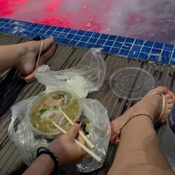 Abends war Emi dann so fertig das es nur noch Pho am Pool gab.