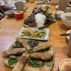 Beim Homestay haben wir super viele andere Gruppen getroffen und ne Menge neuer Leute kennengelernt. Da wir nur einen einzigen Abend hatten, war die Energy auf jeden Fall da und das Happy Water ist in Strömen geflossen. Zu unserem Glück waren die Mikrofone von der Box kaputt und es gab kein Karaoke. Stattdessen haben wir vietnamese Linedance vom Barkeeper gelernt, australischen Freestyle und ein hüpf intensiver Linedance aus Frankreich.Read more