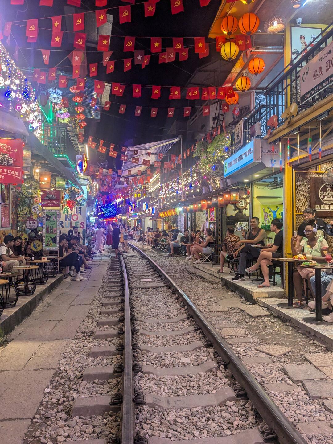 Auf die Hauptattraktion im Hanoi konnte ich natürlich nicht verzichten weshalb wir das noch als grand Finale erledigt haben. Auch wenn es total touristisch ist, hat es natürlich trotzdem seinen Charme mit den ganzen süßen Cafes und Beleuchtungen. Das Warten auf den Zug sorgt für ordentlich Vorfreude und der Moment wenn der Zug dann so nah an einem vorbeifährt ist schon lustig.